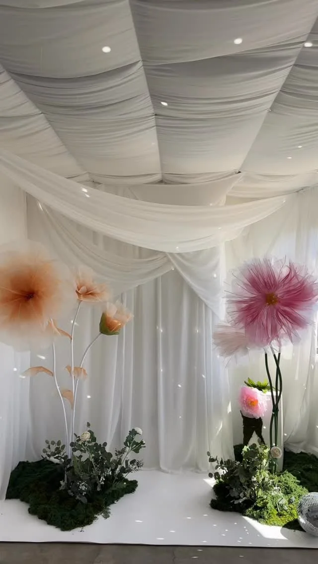 A whimsical spring setup featuring giant statement flowers that create a playful and eye-catching backdrop, perfect for portraits, editorial shoots, and fun spring content.